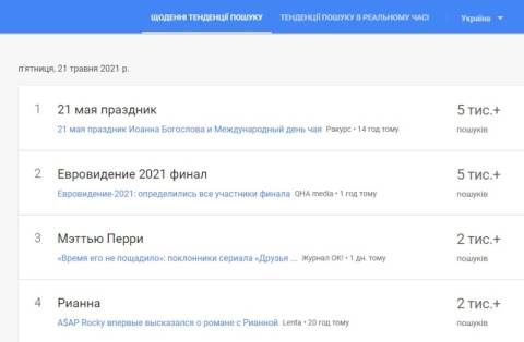 Також українці цікавилися, що фінал Євробачення-2021 пройде цієї суботи, 22 травня. Український гурт Go_A представить свою пісню під 19 номером.