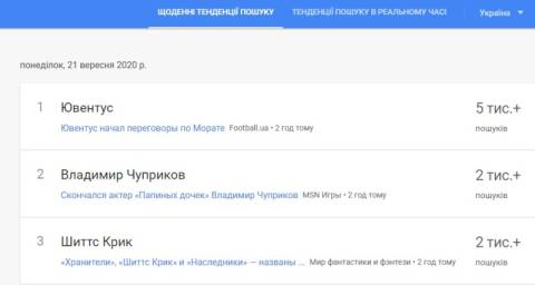 Сьогодні, 21 вересня, українці найбільше шукали у пошуковику Google інформацію про те, що у першому турі Серії А туринський "Ювентус" розгромив "Сампдорію" і встановив новий рекорд у чемпіонаті Італії.