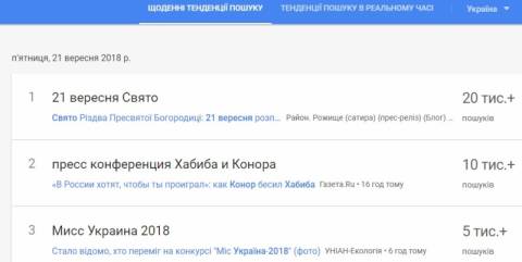 Крім цього, українців цікавило те, що вчора пройшов фінал конкурсу "Міс Україна-2018", який проводиться щорічно з 1991 року. Володаркою титулу ''Міс Україна-2018'' стала 23-річна киянка Вероніка Дідусенко.
