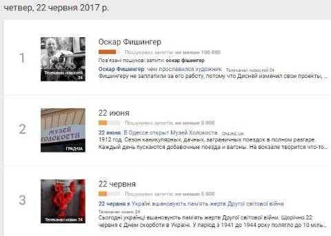Сьогодні, 22 червня, українці найбільше шукали у пошуковику Google інформацію, що сьогодні українці вшановують пам'ять жертв Другої світової війни.