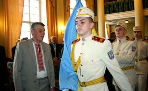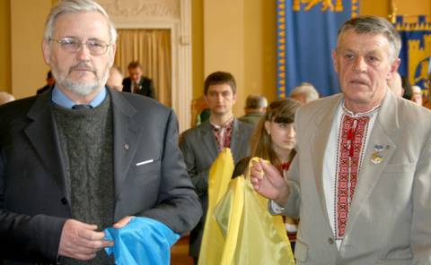 Честь підняти прапор випала депутатам першого скликання Львівської міської ради Стефанії Шабатурі, Зеновію Саляку, Оксані Шморгун, депутатам чинного скликання Івану Кардашу та Андрію Дзюбану, а також кращим учням львівських шкіл.