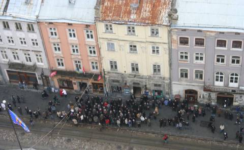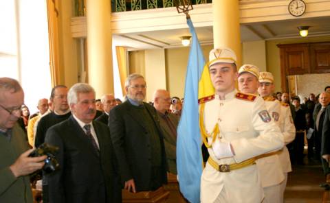Святкування закінчилось офіційним підняттям українського прапору на вежі львівської Ратуші під звуки оркестру «Галицькі сурми».