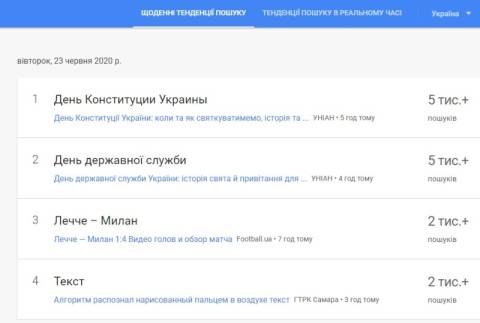Сьогодні, 23 червня, українці найбільше шукали у пошуковику Google інформацію про те, що традиційно щороку День Конституції відзначається 28 червня та є офіційним вихідним днем.