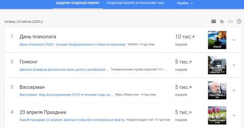 Сьогодні, 23 квітня, українці найбільше шукали у пошуковику Google інформацію про те, що 23 квітня, в Україні відзначається День психолога.
