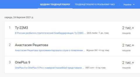 Сьогодні, 24 березня, українці найбільше шукали у пошуковику Google інформацію про те, що компанія OnePlus презентувала флагманську лінійку смартфонів OnePlus 9. Вона представлена в двох версіях – стандартна та Pro-версія.