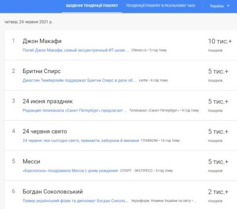 нформація про те, що українці найбільше шукали протягом цього дня.