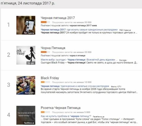 Сьогодні, 24 листопада, українці найбільше шукали у пошуковику Googe інформацію, цього дня відзначають Чорну п’ятницю, день неймовірних знижок і розпродажів.