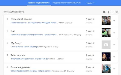 Сьогодні, 14 травня, українці найбільше шукали у пошуковику Google інформацію, що останній дзвоник у Владивостоці перетворився на розпусну вечірку.