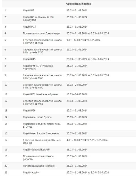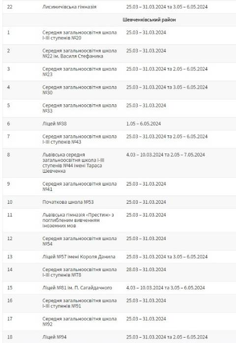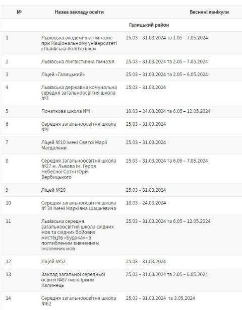 З понеділка, 25 березня, у більшості шкіл Львівської міської територіальної громади стартують весняні канікули, які триватимуть, орієнтовно, один тиждень.