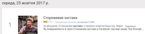 Сьогодні, 25 жовтня, українці найбільше шукали у пошуковику Google інформацію, що за фільмом "Сторожова застава" створено комп'ютерну гру у жанрі tower defence.