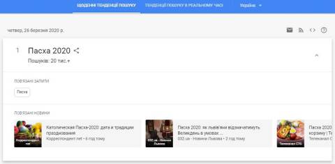Сьогодні, 25 березня, українці найбільше шукали у пошуковику Google інформацію про те, що у 2020 році християни католицької церкви відзначатимуть Великдень 12 квітня, на тиждень раніше за православних. Різниця в датах через те, що православними і католиками використовуються різні церковні календарі - юліанський і григоріанський.