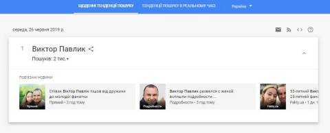 Сьогодні, 26 червня, українці найбільше шукали у пошуковику Google інформацію, що співак Віктор Павлік пішов від дружини до молодої фанатки.