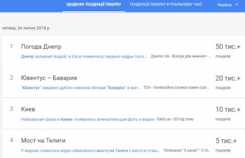 Крім цього, цікавилися українці й тим, що у Києві через сильний дощ обвалився міст на перетині вулиць Кирилівської та Олени Теліги.