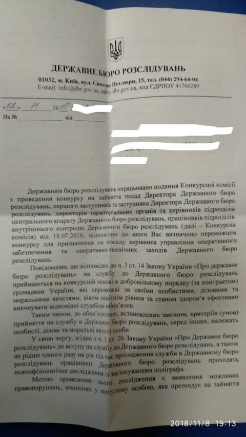Зазначимо, що 2 листопада, очільник Державного бюро розслідувань Роман Труба ініціював оголошення нового конкурсу на 27 керівних посад у відомство у зв'язку зі знищенням конкурсною комісією результатів поліграфа.