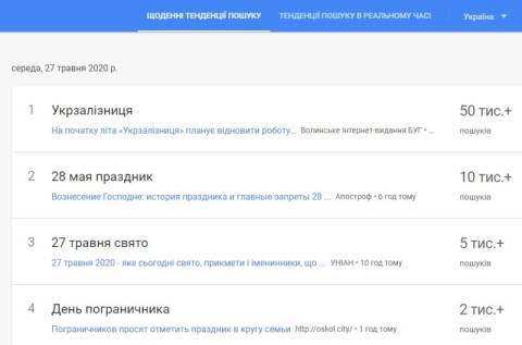 Сьогодні, 27 травня, українці найбільше шукали у пошуковику Google інформацію про те, що Укрзалізниця відкрила продаж квитків на 9 поїздів далекого сполучення, які вирушать у рейси з 1 червня.