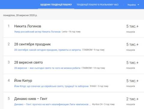 Сьогодні, 28 вересня, українці найбільше шукали у пошуковику Google інформацію про те, що цього дня світ відзначає День свободи від голоду, Міжнародний день права знати, Всесвітній день боротьби проти сказу, День народження ломбарду, Міжнародний день загального доступу до інформації, Міжнародний день безпечних абортів.