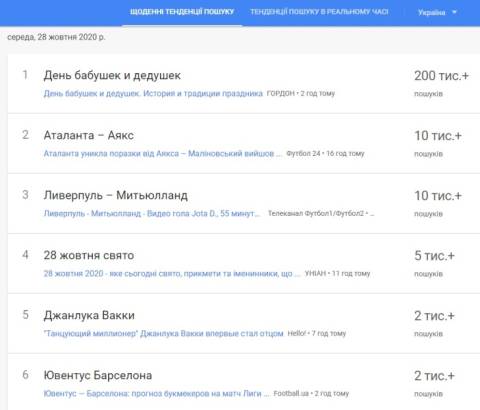 Інформація про те, що українці найбільше шукали протягом цього дня.