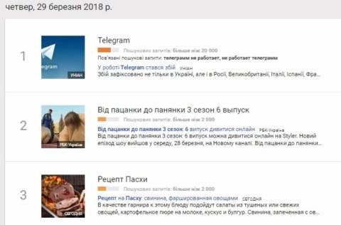Сьогодні, 29 березня, українці найбільше шукали у пошуковику Google інформацію, що в роботі популярного месенджера Telegram стався збій.