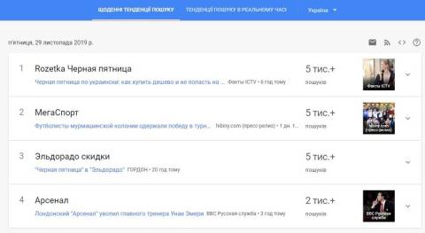 Сьогодні, 28 листопада, українці найбільше шукали у пошуковику Google інформацію про те, що в Україні стартував головний розпродаж року "Чорна п'ятниця" (Black Friday). Цей день обіцяє покупцям знижки на весь товар до 70-90 %.
