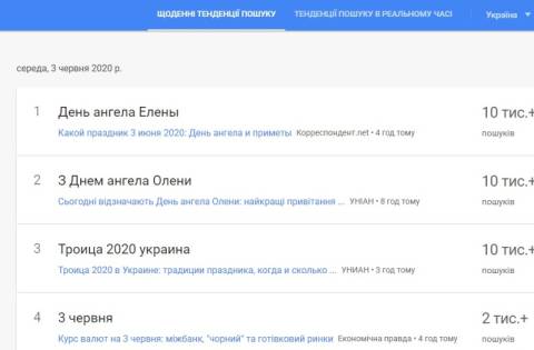Сьогодні, 3 червня, українці найбільше шукали у пошуковику Google інформацію про те, що цього дня у світі відзначають Свято прогульника, День народження парашута, День яйця, День ангела Олени, Всесвітній день велосипеда, Міжнародний день бігу, День згадування про сніг.