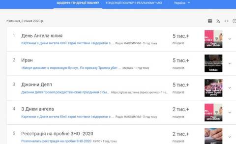 Сьогодні, 3 січня, українці найбільше шукали у пошуковику Google інформацію, що в цей день православні християни вшановують пам'ять священномучениці Юліанії Вяземської і Новоторзької - а тому багато дівчин-носіїв імені Юлія святкують свої іменини.