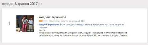 Сьогодні, 3 травня, українці найбільше шукали у пошуковику Google інформацію про те, що російські актори відмовилися від виступу в окупованому Криму.