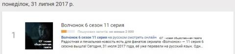 Сьогодні, 31 липня, українці найбільше шукали у пошуковику Google інформацію про серіал «Вовченя» – американський молодіжний містико-драматичний серіал, знятий за мотивами однойменного фільму 1985 року на замовлення телеканалу MTV.