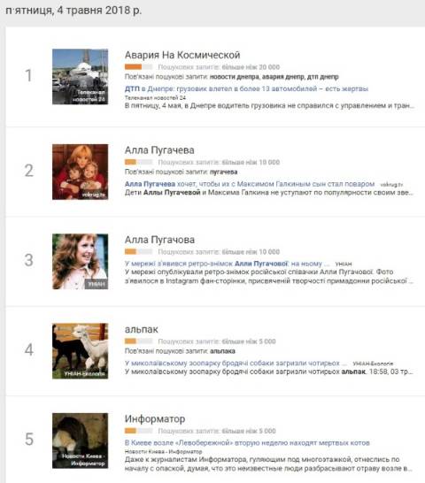 Сьогодні, 4 травня, українці найбільше шукали у пошуковику Google інформацію, що зранку у Дніпрі водій вантажівки не впорався з керуванням і транспортний засіб знесло з дороги на парковку біля магазину.