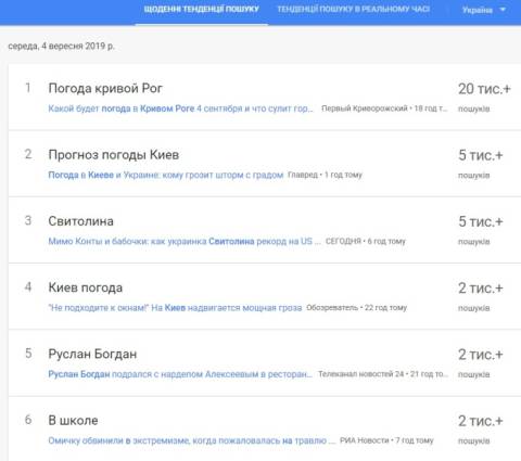 Сьогодні, 4 вересня, українці найбільше шукали у пошуковику Google інформацію, що цього дня на Півночі, Заході, у центральних областях України синоптики зафіксували різке похолодання, натомість у Харківській, Луганській, Донецькій, Запорізькій та Херсонській областях була спека.