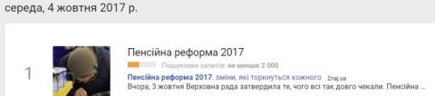 Сьогодні, 4 жовтня, українці найбільше шукали у пошуковику Google інформацію, що вчора Верховна Рада затвердила пенсійну реформу.