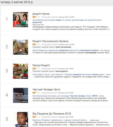 Сьогодні, 5 квітня, українці найбільше шукали у пошуковику Google інформацію про рецепти паски до Великодня.