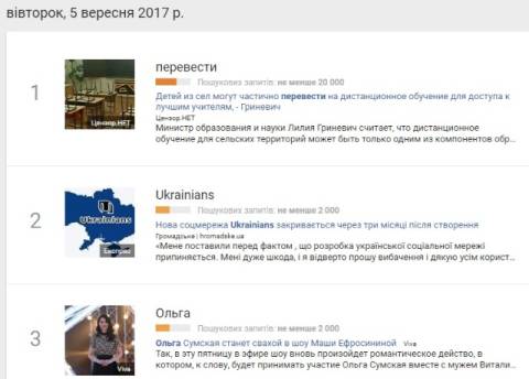 Сьогодні, 5 вересня, українці найбільше шукали у пошуковику Google інформацію, що українська соціальна мережа Ukrainians припиняє діяльність через 3 місяці після заснування.