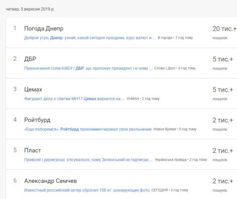 Сьогодні, 5 вересня, українці найбільше шукали у пошуковику Google інформацію, що за ініціативою Зеленського до Конституції України хочуть включити норму про те, що президент призначає та звільняє з посад глав ДБР і НАБУ.