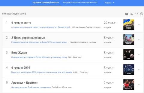 Сьогодні, 6 грудня, українці найбільше шукали у пошуковику Google інформацію, що сьогодні в Україні відзначають День збройних сил.