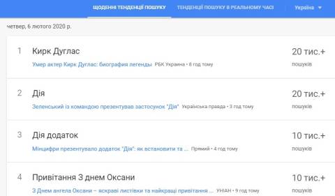 Сьогодні, 6 лютого, українці найбільше шукали у пошуковику Google інформацію про те, що в Україні почав працювати мобільний додаток "Дія", де водії можуть зберігати документи у електронному вигляді.