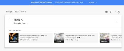Сьогодні, 6 серпня, українці найбільше шукали у пошуковику Google інформацію, що в Україні запровадили міжнародний номер банківського рахунку IBAN. Нові рахунки від понеділка, 5 серпня, українські банки почали відкривати виключно відповідно до вимог міжнародного номера IBAN.
