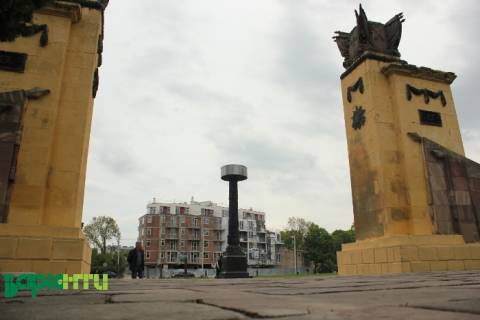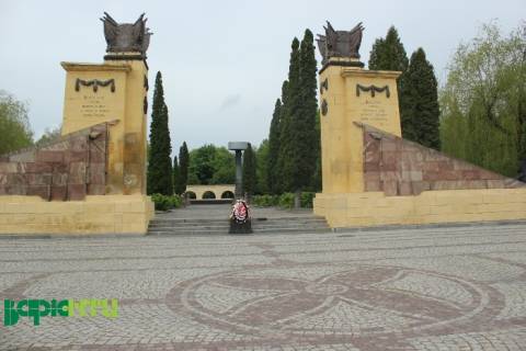 На самому Пагорбі Слави без традиційних відвідувачів – тихо та спокійно і тільки Личаківський РК КПУ встиг прив'язати вінок до вічного вогню.