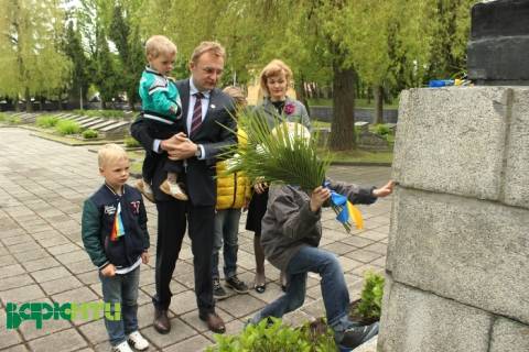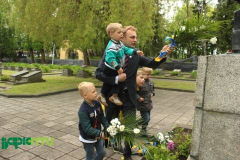 Але діти є діти. Вони хочуть бути самостійними і тому один з синів Андрія Івановича власноручно хоче покласти квіти на дещо підвищене підніжжя.