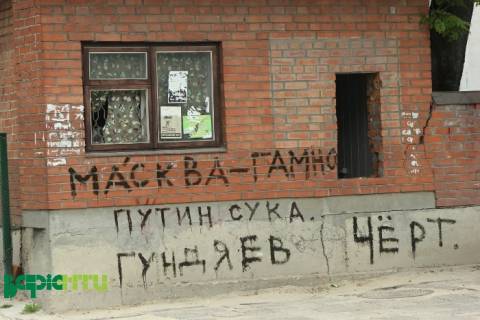 Пасічна зустрічає Садового ось таким колоритним графіті з трійцею сталих ідентифікацій напередодні 9 травня.