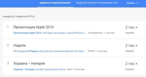 Сьогодні, 9 вересня, українці найбільше шукали у пошуковику Google інформацію, що 10 вересня відбудеться презентація нового iPhone 11 компанією Apple.