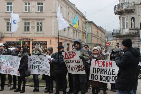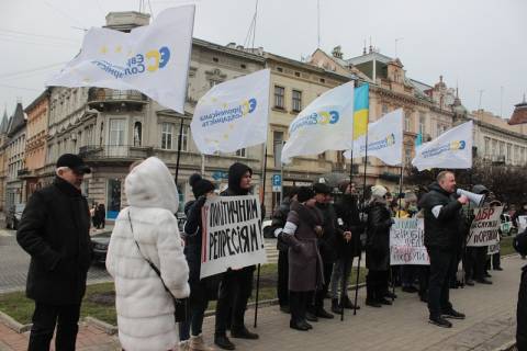 Сьогодні, 6 лютого, під Львівською прокуратурою відбувся пікет проти свавілля влади. Близько 30 людей з плакатами з написами "Ні політичним реперсіям" та "Сьогодні Звіробій і Федина, завтра можеш бути ти" вийшли на підтримку Софії Федини та Марусі Звіробій. Протестувальники стояли з прапорами України та символікою партії "Європейська Солідарність".