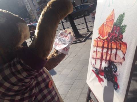 Сьгодні львівські активісти організували акцію протесту біля магазину "Рошен" на площі Галицькій.