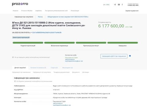 – філе куряче для закладів дошкільної освіти Сихівського району Львова;
