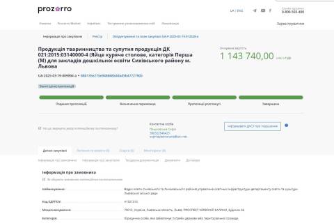 - яйце куряче першої категорії для закладів дошкільної освіти Сихівського району Львова;
