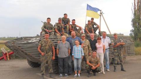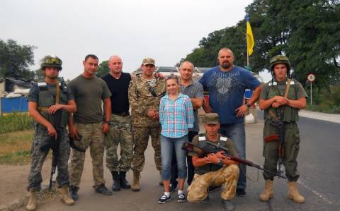 Актор Віктор Андрієнко та богатир Василь Вірастюк провели в зоні АТО творчий вечір для прикордонників та місцевих жителів.