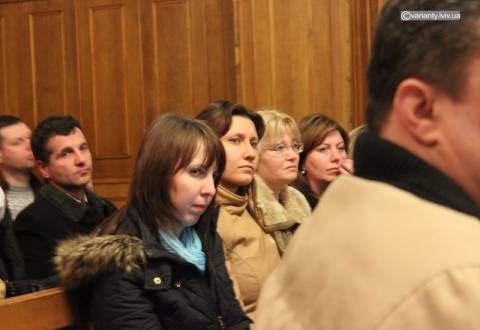 У залі засідання були присутні члени Комітету підприємців Львівщини, активісти «Правого сектору», помічниця народної депутатки Ірини Подоляк Анна Лиско.