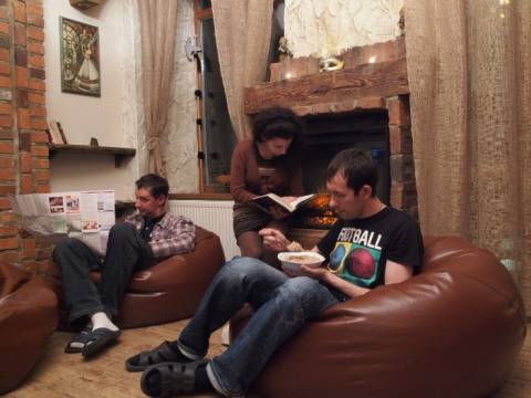 Я вважаю, що важливим критерієм хорошого хостелу є спільна лаунж-зона з м’якими пуфами, або зі столом, де б люди могли комфортно спілкуватись. Ми дуже тішимось, коли спостерігаємо, як тут збираються люди, які не знали один одного до цієї зустрічі.