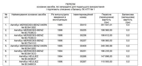Йдеться про списання з балансу комунального підприємства 18 автобусів загальною вартістю 4,3 млн грн, які в останні роки вже не використовувались і не підлягають відновленню.