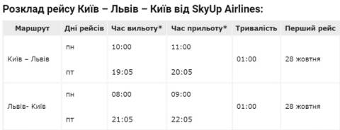 Авіакомпанія SkyUp Airlines з 28 жовтня запроваджує авіарейс з Києва до Львова. Перельоти здійснюватимуться двічі на тиждень, в понеділок та п'ятницю.
