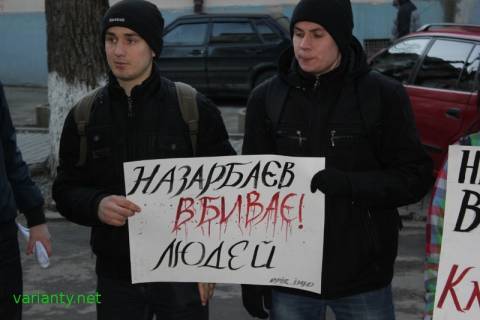 Автономний опір пікетує консульство Республіки Казахстан у Львові. Акція присвячена річниці розстрілу мирної демонстрації робітників Жанаозену.